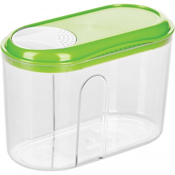 Емкость для сыпуч. продукт. с дозатором; полипроп.; 1, 5л; H=215, L=150, B=70мм; прозр., зелен.