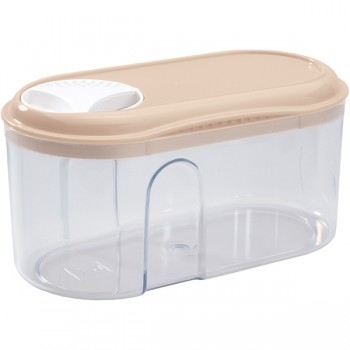 Емкость для сыпуч. продукт. с крышкой; полипроп.; 2л; H=210, L=220, B=75мм; прозр., бежев.