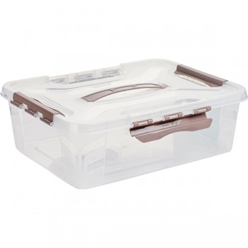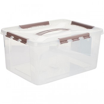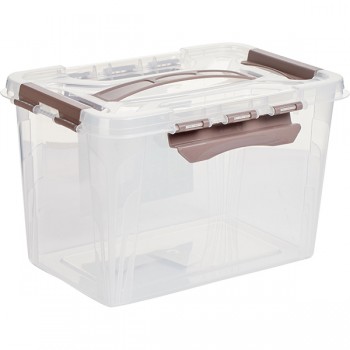 Ящик универсальный с замками и ручкой; полипроп.; 15, 3л; H=18, L=39, B=29см; прозр., коричнев.