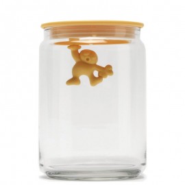 Банка для хранения, дизайн которой сосредоточен не на наружней ее части, а на содержимом. Забавный резиновый человечек, который держится одной рукой за внутреннюю сторону крышки, был придуман итальянцем Маттио ди Росса — одним из самых юных дизайнеров, когда-либо творивших для Alessi. Емкость идеально подойдет для хранения кофе, чая, пасты и другой бакалеи: герметичная крышка надежно защитит продукты от влаги, выдыхания или заветривания. Детали: - Материал: стекло - Герметичная крышка из термопластичной резины - Объем: 0,7 л. - Дизайн: Mattia Di Rosa