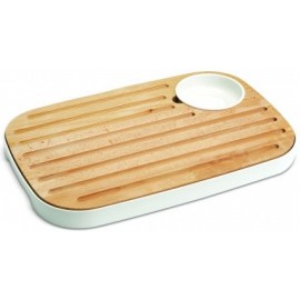 Натуральная древесина бука, из которой изготовлена доска, отличается ярко выраженным природным рисунком из сучков и прожилок. Благодаря подобным естественным узорам каждый отдельный предмет коллекции является уникальным в своем роде. А завершает дизайн этой элегантной доски рельефный орнамент, выгравированный вдоль каймы.