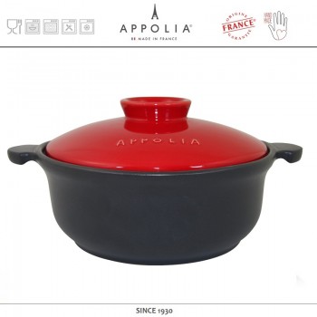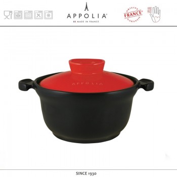 Кастрюля керамическая круглая FLAME BLACK CHERRY, 1.5 л, керамика жаропрочная, APPOLIA