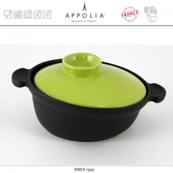 Кастрюля керамическая круглая FLAME BLACK KIWI, 1.5 л, керамика жаропрочная, APPOLIA