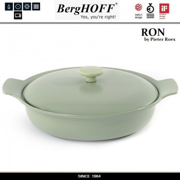 Кастрюля-сотейник RON чугунный для плиты и духовки, 3.3 л, D 28 см, цвет зеленый, BergHOFF