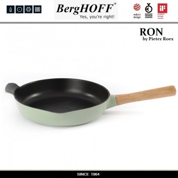 Сковорода RON чугунная с эмалевым покрытием, D 26 см, индукционное дно, цвет зеленый, BergHOFF