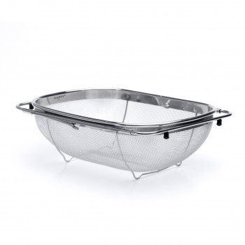 Разработано в Бельгии Раздвижной дуршлаг Studio подходит для большинства кухонных раковин квадратной и прямоугольной формы. Максимально удобен в использовании. Изготовлен из высококачественной нержавеющей стали. Сито среднего размера позвояет мыть даже маленькие ягоды и мелкие листья. Можно мыть в посудом..