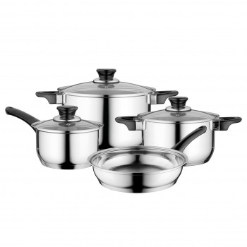ОписаниеНабор самых необходимых на кухне предметов. Изготовлен из высококачественной нержавеющей стали 18/10. Имеет зеркальную полировку снаружи и матовую внутри. Трехслойное дно не деформируется при нагреве и обеспечивает быстрое и равномерное распределение тепла. Стеклянная крышка с отверстием для выхода пара позволяет следить за едой без необход..