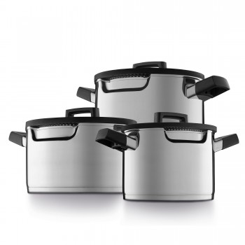 ОписаниеНабор самых нужных на кухне кастрюль из высококачественной нержавеющей стали 18/10 с крышками. - 3-слойное капсульное дно не деформируется при нагревании, делает возможным энергоэффективное приготовление пищи и равномерное распределение тепла по всей поверхности. - Высококачественная нержавеющая сталь 18/10 для повышенной прочности и гигие..