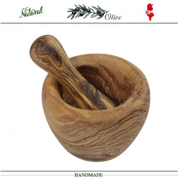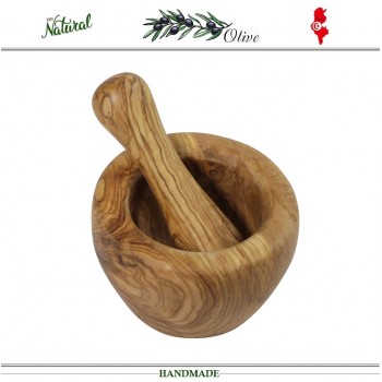 Пестик и ступка Aromate ручной работы, 11-12 см, дерево оливы, LE PALAIS