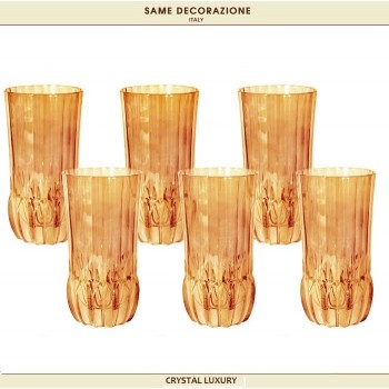 Хрустальные бокалы итальянского бренда SAME - воплощение роскоши. Каждое изделие создается на высокотехнологичном оборудовании. Декор наносится итальянскими мастерами вручную. Бокалы коллекции Adagio Amber восхитительного янтарного цвета добавят сервировке стола благородный штрих. Сложные грани красиво играют при ис..