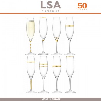 Бокалы Deco Flute для шампанского с золотым декором, выдувное стекло, 8 шт по 225 мл, LSA