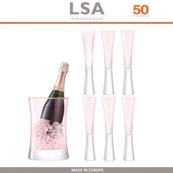 Набор MOYA для подачи шампанского, розовый, 7 предметов, ручная выдувка, LSA