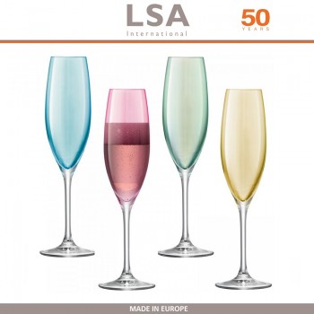 Набор бокалов Polka для шампанского, ручная работа, 4 шт по 225 мл, цвет мультиколор, LSA