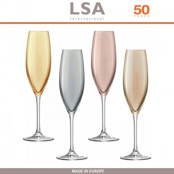 Набор бокалов Polka для шампанского, ручная работа, 4 шт по 225 мл, цвет металлик, LSA