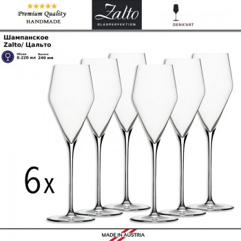 Бокалы Zalto Champagne для игристых вин и шампанского, ручная выдувка, 6 шт по 220 мл, Zalto