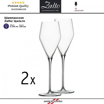 Бокалы Zalto Champagne для игристых вин и шампанского, ручная выдувка, 2 шт по 220 мл, Zalto