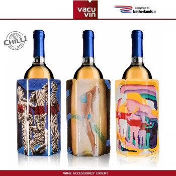Стильная коллекция винных кулеров The Ramon Bruin Collection, созданная совместео с голландским художником Рамоном Брюином. Быстрое охлаждение напитка за 5 минут благодаря специальным гибким охлаждающим рубашкам для бутылок от известного европейского бренда Vacu Vin. Храните рубашку-кулер в морозильной камере и доставайте к обеду и..