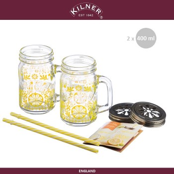 Набор банок Drink Jar для холодных напитков подарочный желтый, 6 предметов, KILNER