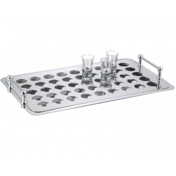 Поднос для подачи стопок водки и текилы - полезный аксессуар сервировки на приемах, торжествах, домашних вечеринках и других мероприятиях. Рассчитан на 45 стопок, диаметром 3.7 см. Элегантный дизайн, высококачественная сталь с зеркальной полировкой...
