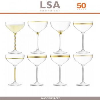 Бокалы Deco для шампанского с золотым декором, выдувное стекло, 8 шт по 235 мл, LSA