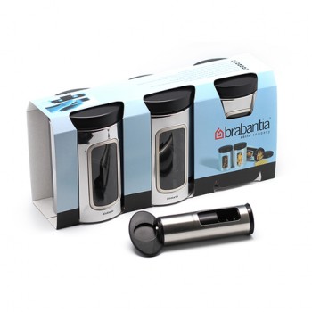 В набор входят: 1. Контейнер для сыпучих продуктов с окном 1,4 л, черный - 2 шт., 333521 Практичное решение для хранения кофе, чая, макаронных изделий и других продуктов, позволяющее дольше сохранять их свежесть. Контейнер имеет гладкую внутреннюю поверхность и легко чистится. Прозрачное окошко из антистатических материалов, благодаря котором..