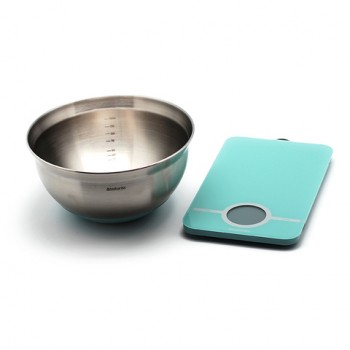 Взвешиваем, смешиваем, готовим! Почувствовать себя настоящим кулинаром с этим красочным набором совсем несложно. В набор входит: цифровые весы и миска-салатник с силиконовым дном. Цифровые кухонные весы, мятный Просты в уходе – стеклянная поверхность. Большой предел взвешивания – 5000 г/11 унций. Цифровая система, обеспечивающая высокую точно..