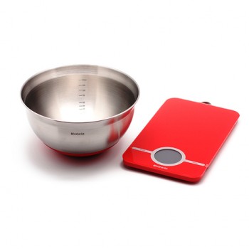 Взвешиваем, смешиваем, готовим! Почувствовать себя настоящим кулинаром с этим красочным набором совсем несложно. В набор входит: цифровые весы и миска-салатник с силиконовым дном. Цифровые кухонные весы, красный Просты в уходе – стеклянная поверхность. Большой предел взвешивания – 5000 г/11 унций. Цифровая система, обеспечивающая высокую точн..