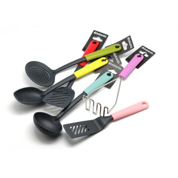 Стильные и функциональные кухонные принадлежности серии «TastyColours» помогут не только приготовить любое блюдо, но и добавят цвета и настроения в интерьер Вашей кухни. В набор входят: половник, шумовка, ложка поварская, картофелемялка, лопатка малая, лопатка большая. Половник с длинной ручкой поможет аккуратно разлить суп по тарелкам. Шумовка..