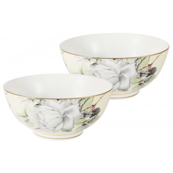 Набор пиал (салатников) White Roses, 2 шт, костяной фарфор, позолота, Colombo