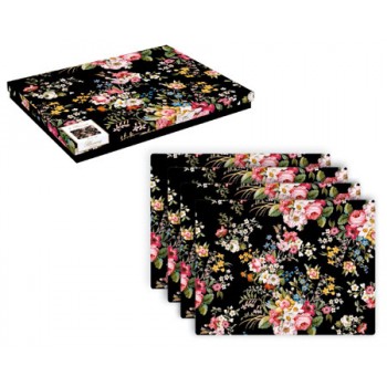 Набор настольных подкладок, L 40 см, W 30 см, 4 шт, пробка, серия Blooming Opulence Black, Easy Life