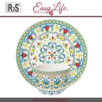 Коллекция Capri c ярким декором в лучших традициях итальянского дизайна. Изготовлено из высококачественного фарфора. Можно мыть в посудомоечной машине. Итальянский бренд Easy Life (Nuova R2S) - это изысканная фарфоровая посуда для красивого дома. ..