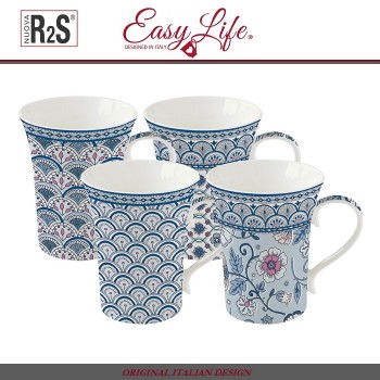 Набор кружек Monsoon синий, 4 шт по 360 мл, фарфор, Easy Life