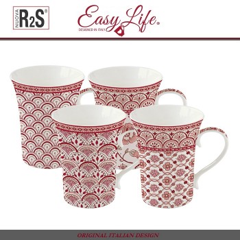 Набор кружек Monsoon красный, 4 шт по 360 мл, фарфор, Easy Life
