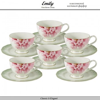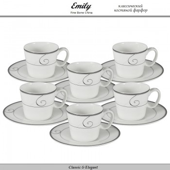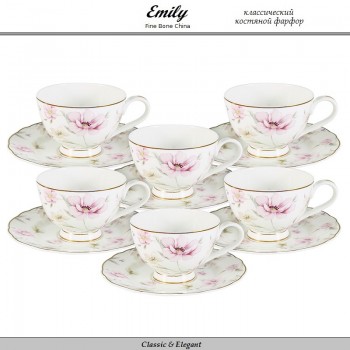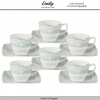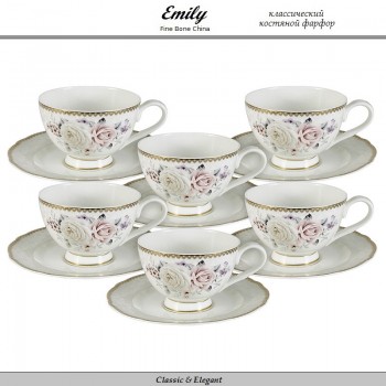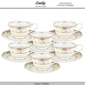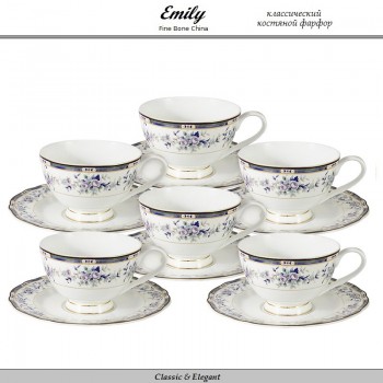 Набор чайных пар Charlotte, на 6 персон, 12 предметов, костяной фарфор, Emily