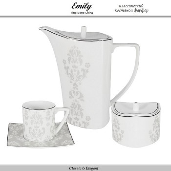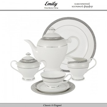 Коллекция Veronika (Вероника) - изысканное сочетание современной формы и нежного классического декора серебристых тонов. В наборе 14 предметов на 6 персон: 6 х чашек чайных (кофейных) (175 мл), 6 х блюдец, 1 х чайник заварочный (1.4 л), 1 х сахарница (0.3 л). Посуда Emily производится из высококачественного костяного фарфора. Пове..