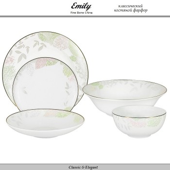 Коллекция Flowers. Нежный цветочный декор в золотом обрамлении. Посуда Emily производится из высококачественного костяного фарфора. Поверхность изделий покрыта превосходной сверкающей глазурью, не содержащей свинца. Международная группа дизайнеров из Англии, Германии и Восточной Азии непрерывно работает над созданием новых д..