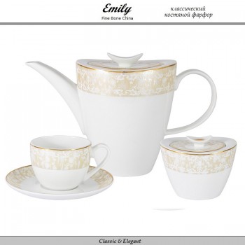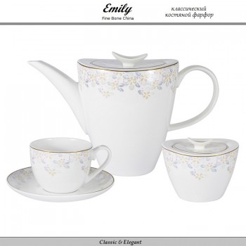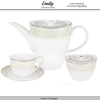 Коллекция Paris (Париж) - элегантная классика в современной интерпретации. В наборе 14 предметов на 6 персон: 6 х чашек чайных (кофейных) (175 мл), 6 х блюдец, 1 х чайник заварочный (1.4 л), 1 х сахарница (0.3 л). Посуда Emily производится из высококачественного костяного фарфора. Поверхность изделий покрыта превосходной сверкающе..