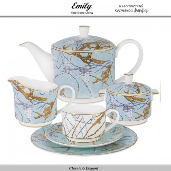 Комплект чайный Marcel, сервиз 21 предмет на 6 персон, костяной фарфор, Emily