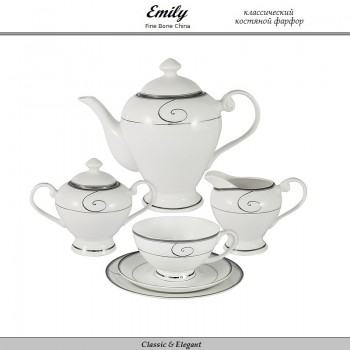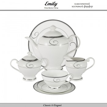 Сервиз чайный Wave, 40 предметов на 12 персон, костяной фарфор, Emily