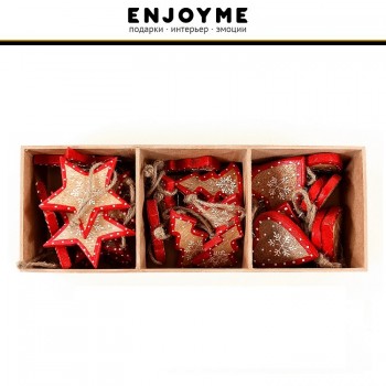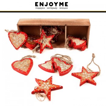 Деревянные елочные украшения ручной работы, красный декор, 12 шт, в подарочной коробке, EnjoyMe
