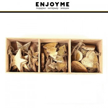 Деревянные елочные украшения ручной работы, золотой декор, 24 шт, в подарочной коробке, EnjoyMe