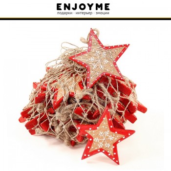 Деревянные елочные украшения ручной работы, красный декор, 30 шт, в подарочной коробке, EnjoyMe