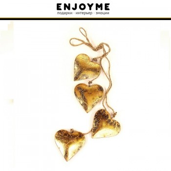 Гирлянда елочная "Golden Hearts" золотая, 4 шт, металл, EnjoyMe