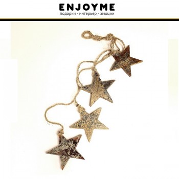 Гирлянда елочная "Golden Stars" золотая, 4 шт, металл, EnjoyMe