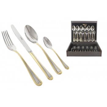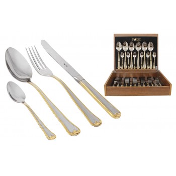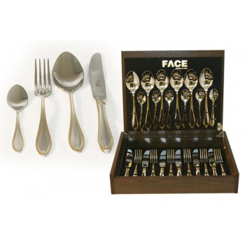 Набор столовых приборов Falperra Gold в деревянной коробке, 24 предмета на 6 персон, сталь, позолота, Face