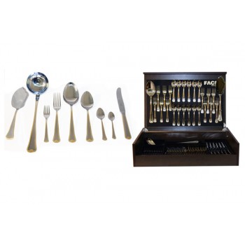 Набор столовых приборов Geneva в деревянной коробке, 75 предметов на 12 персон, сталь, позолота, Face