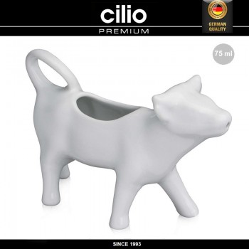 Идеальный молочник "Корова" для красивой сервировки немецкого бренда CILIO. Изготовлен из высококачественного фарфора. Максимальный объем 75 мл. Можно мыть в посудомоечной машине. Подарочная упаковка. ..