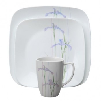 Произведено в США. В наборе 16 предметов на 4 персоны: 4 кружки - объем 350 мл 4 обеденные тарелки - размер 25 см, 4 закусочные тарелки - размер 18 см 4 миски - объем 650 мл Серия "Shadow Iris" от Corelle - нежная и элегантная коллекция столовой посуды для повседневного использовани..