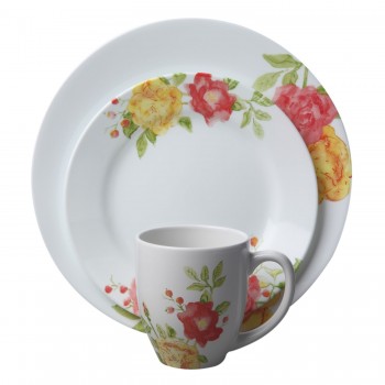 Произведено в США. В наборе 16 предметов на 4 персоны: 4 кружки - объем 350 мл 4 обеденные тарелки - размер 25 см, 4 закусочные тарелки - размер 18 см 4 миски - объем 650 мл Серия посуды "Emma Jane" от Corelle освежит обеденный стол свежими красками и роскошным цветочным декором. Не..