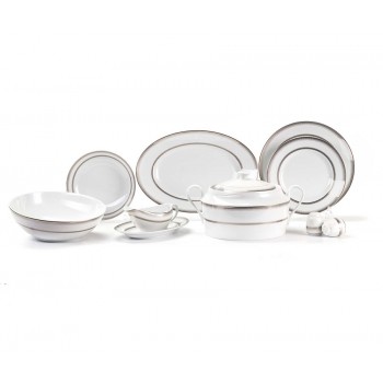 Произведено во Франции В комплект столового сервиза серии "Royal Platina" входит: обеденные тарелки, D 27 см - 6 шт глубокие тарелки, D 22 см - 6 шт десертные тарелки, D 19 см - 6 шт супница (с отверстием для половника), 3,5 л - 1 шт блюдо овальное, 35 см - 1 шт блюдо овальное, 23,5 см - 1 шт с..